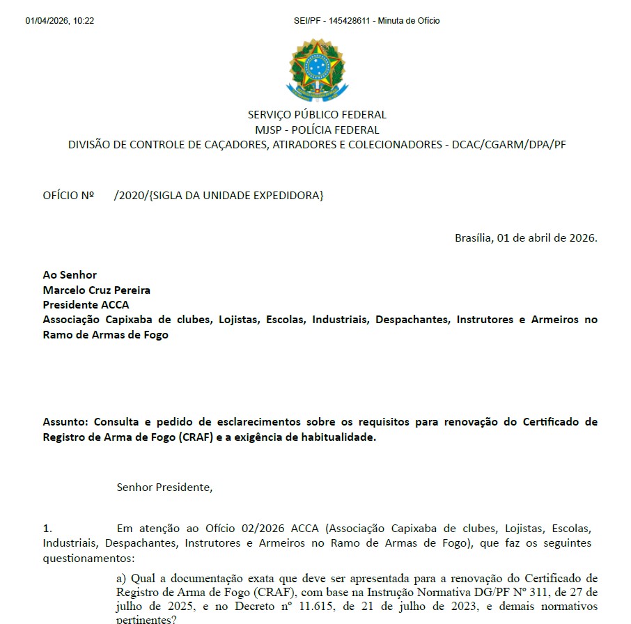 correcao-habitualidade-2 oficio da PF 01/04/2026 Consulta e pedido de esclarecimentos sobre os requisitos para renovação do Certifi cado deRegistro de Arma de Fogo