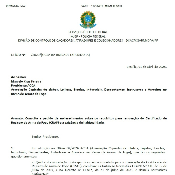 correcao-habitualidade-2 oficio da PF 01/04/2026 Consulta e pedido de esclarecimentos sobre os requisitos para renovação do Certifi cado deRegistro de Arma de Fogo (CRAF) e